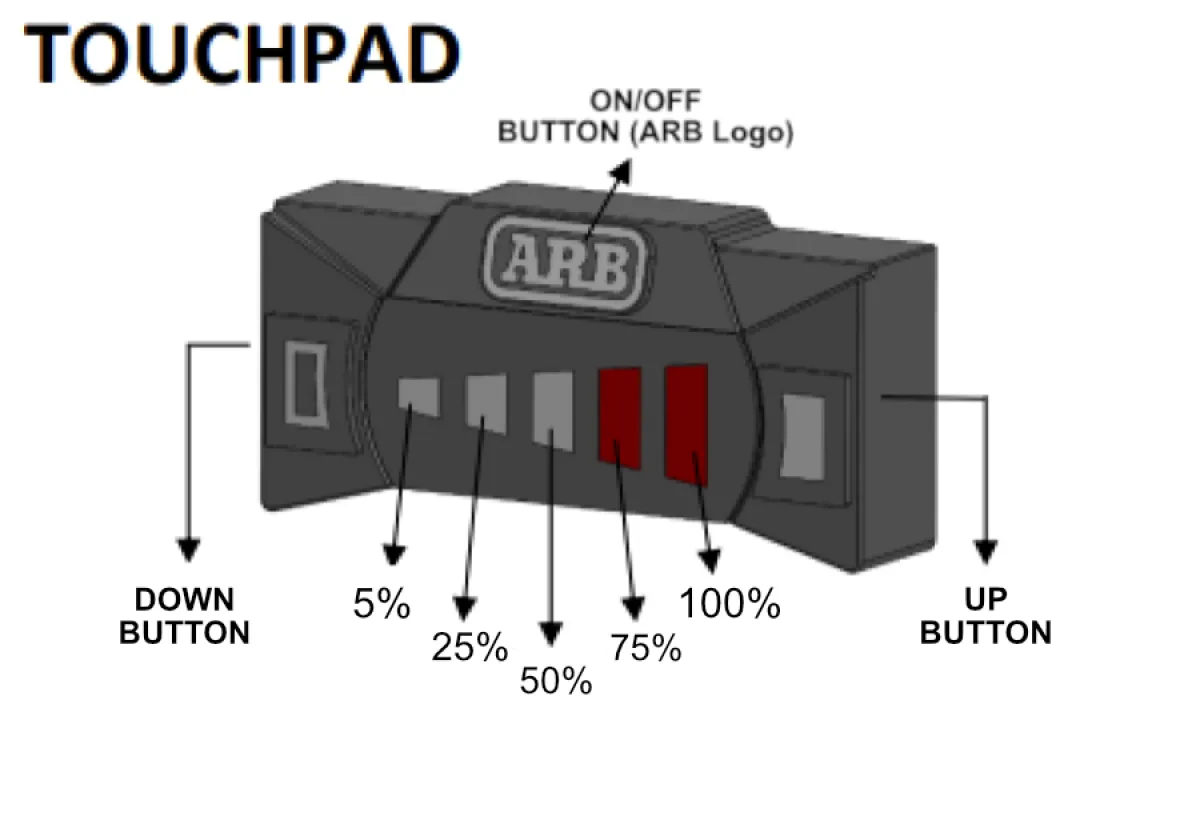 Um die Scheinwerfer etwas abwechslungsreicher zu gestalten, wurde eine Dimmfunktion verbaut, sodass man über einem digital gesteuerten Touchpad die Möglichkeit hat, die Hochleistungs-LEDs in fünf verschiedenen Helligkeiten einzustellen. Hierbei ist zu beachten, dass es einen On-Road und einen Off-Road Modus gibt. Bei dem On-Road Modus (drei Helligkeitsstufen) ist sichergestellt, dass die gesetzlichen Anforderungen eingehalten werden. Die maximale Leistung ist dadurch gesperrt und kann nur durch eine separate Aktivierung freigeschaltet werden und leuchtet dann auf dem Touchpad in roter Farbe auf. Dieser Modus ist ausschließlich für den Off-Road Bereich zulässig! Das Touchpad wurde möglichst klein gehalten, damit es sich nahezu unauffällig am Armaturenbrett verhält.