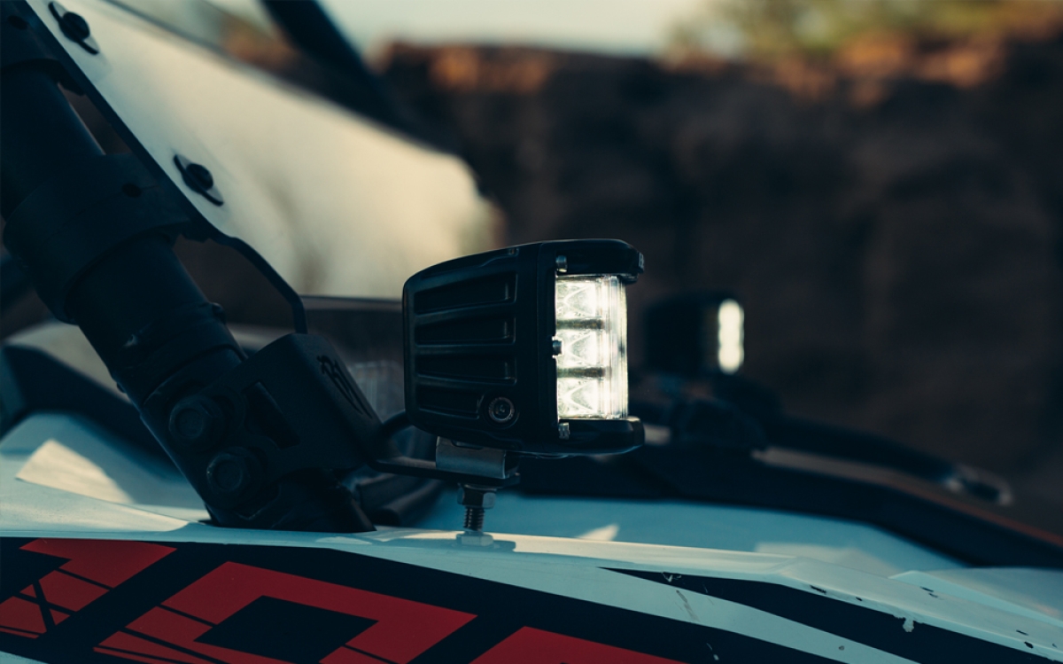 One of Rigid’s most versatile, compact lighting solutions just got better with the D-SS, Dually Side Shooter LED cube. Perfect for any application that requires a wide spread beam, including A-Pillars, Fog Lights, and motorcycle applications. The D-SS cube incorporates the same powerful optics and legendary LED technology as Rigid’s popular D-Series lights but with the added benefit of additional LEDs aimed to the side for a much broader beam. The D-SS fixtures boast up to 120-degrees of horizontal lighting coverage when used in pairs or when used in the single light applications. The main forward-facing LEDs are available with Rigid’s advanced Flood, Spot, or Driving optics, so there’s a D-SS lighting solution for nearly any application. The D-SS LED lights are available in pairs with three side-shooting LEDs on one side of each fixture, or in single applications with a pair of side-shooting LEDs on both sides of the fixture.