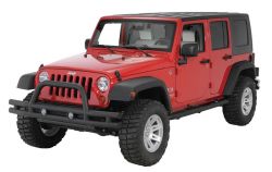 The Steel high clearance bumper was found on the Off Road Anniversary Style Freedome Bumper Wrangler . It is wide enough to provide fender protection but is narrower than the stock bumper. Uses the production tow hooks. Designed for use with or without winch mount. The Winch is mounted low for protection, and does not restrict engine cooling. The textured Black finish is E-coated and powder coated to meet the industry`s toughest corrosion requirements and are heavily gusseted for strength and tough looks. Designed to meet all Chrysler occupant protection requirements and is compatible with your vehicle`s airbag system. Functional and Strong, this front bumper is just the ticket!