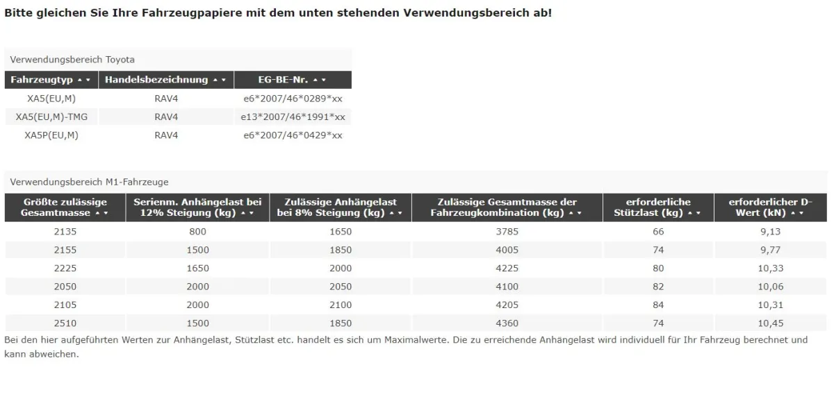 Verstärkte Anhängerkupplung, starr, inklusive Gutachten zur Anhängelasterhöhung auf max. 1650 - 2100 kg Anhängelast (je nach Typ, Verwendungsbereich beachten). Im Lieferumfang ist kein E-Satz enthalten, nutzen Sie hierzu unser Zubehörsortiment. Eine TÜV-Abnahme ist notwendig.