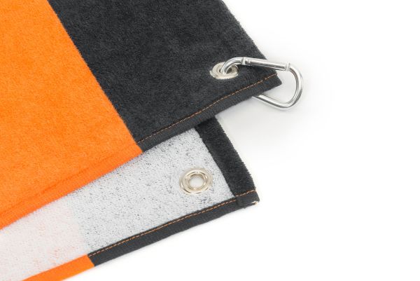 They measure 34" x 64" and feature 2 grommets with a carabiner clip to hold your towel in place over the headrest.