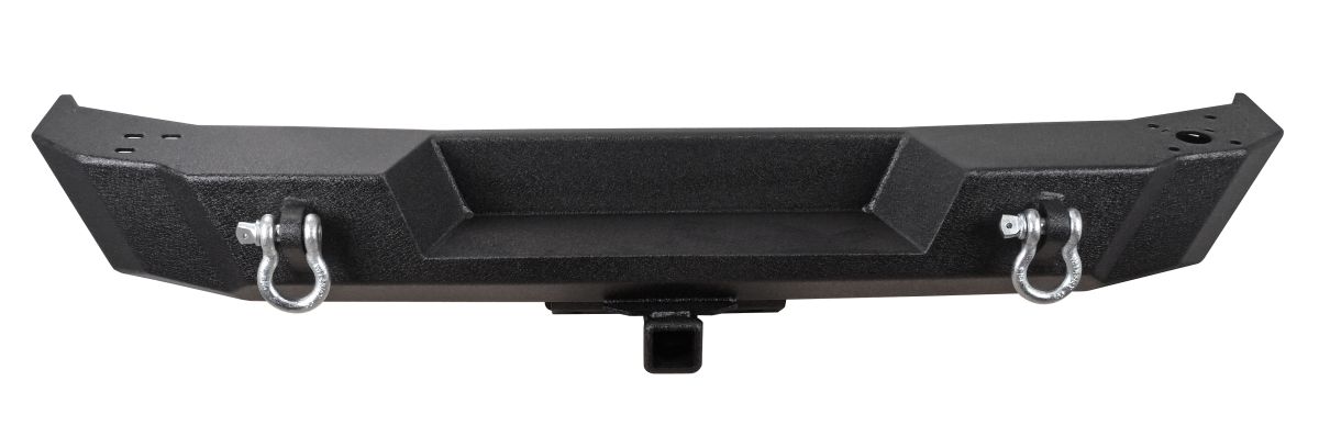 Super robuste, massive, schwarze aus 5 mm dickem Stahl gefertige Heckstoßstange für den Jeep Wrangler JK, mit Aussparung für das Reserverad. Die bereits an der Stoßstange verschweißte Anhängerkupplung, kann mit dem original amerikanischen Abschlepphaken (gehört nicht zum Lieferumfang) verwendet werden. Die Montage der Stoßstange erfolgt an den vorhandenen Befestigungspunkten ohne zu bohren. Zum weiteren Lieferumfang gehört der zur Heckstoßstange passende Reserveradträger Dieser ebenfalls aus massiven Stahl (36kg. Eigengewicht) gefertigte Ersatzradträger, mit ausschwenkbaren Arm, verleiht Ihrem Jeep Wrangler ein optisches Highlight.