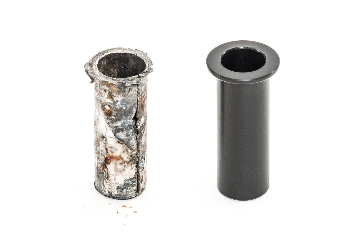 Ersetzen Sie korrodierte und abgenutzte Türscharnierstiftbuchsen durch unseren unzerstörbaren Ersatz. Unsere synthetischen Buchsen aus echtem DuPont Delrin rosten niemals und überdauern die fehlerhaften werkseitigen Metallbuchsen. Unser verbessertes Buchsen-Design bietet eine gute Passform und ermöglicht ein reibungsloses Öffnen und Schließen Ihrer Türen. Das Entfernen der Tür wird niemals einfacher sein. Türen heben gleich ab! Schlagen Sie einfach Ihre korrodierten Werksbuchsen mit dem mitgelieferten Aluminium-Entfernungsstempel aus. Unsere neuen Buchsen sind präzise bearbeitet, um von Hand oder durch leichtes Gewindeschneiden eingedrückt zu werden. Die Kits enthalten Ersatzbuchsen für die Türscharniere, ein Ausbauwerkzeug und detaillierte Installationsanweisungen. Nur für Scharniere der Erstausrüstung!